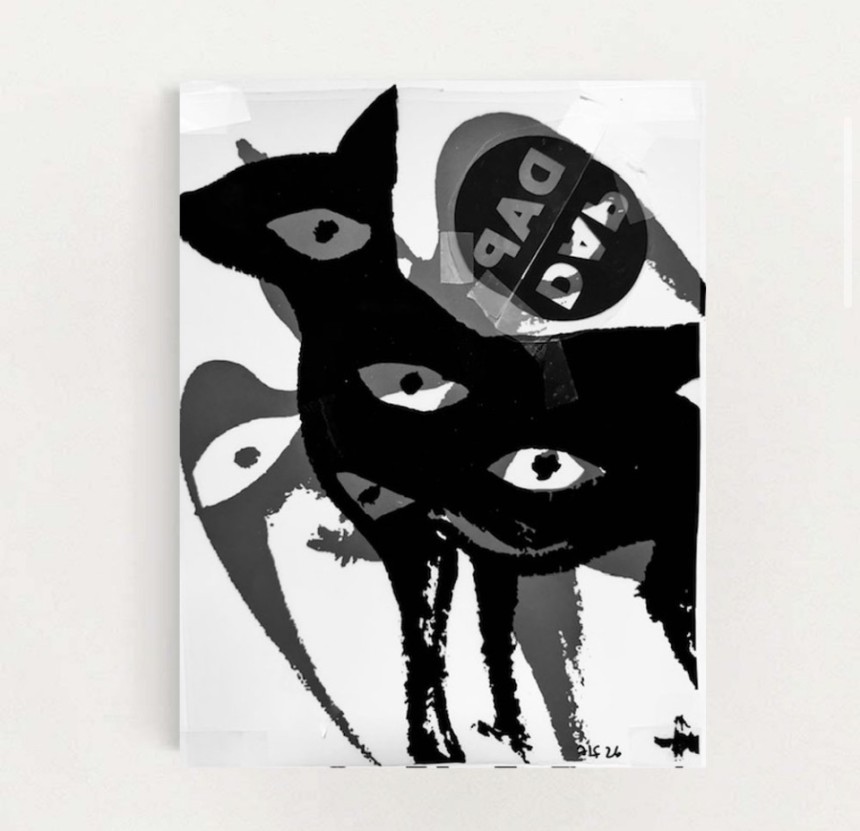 This captivating collage, "dap dap," is a small but striking piece that brings abstract energy to any space. Crafted from salvaged film...