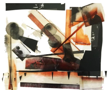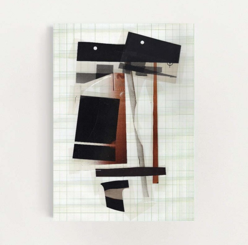 black, white and amber film collage on graph paper